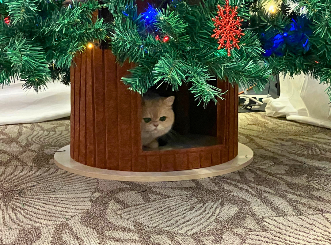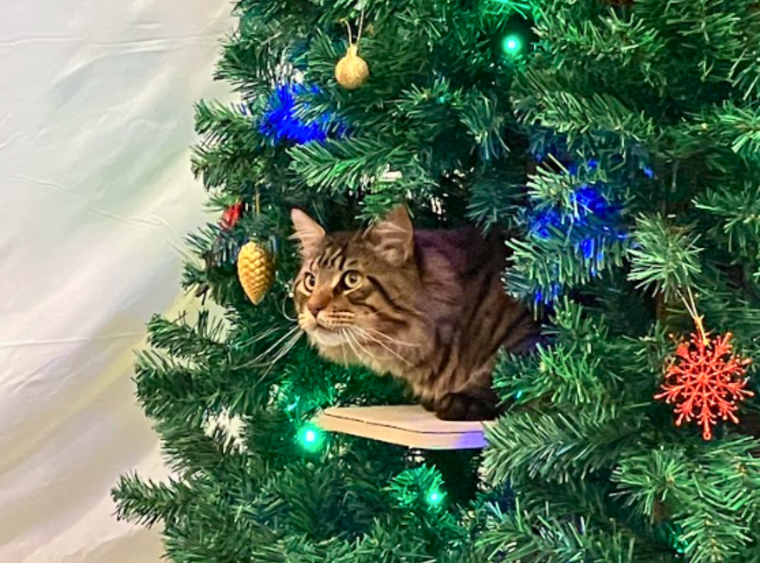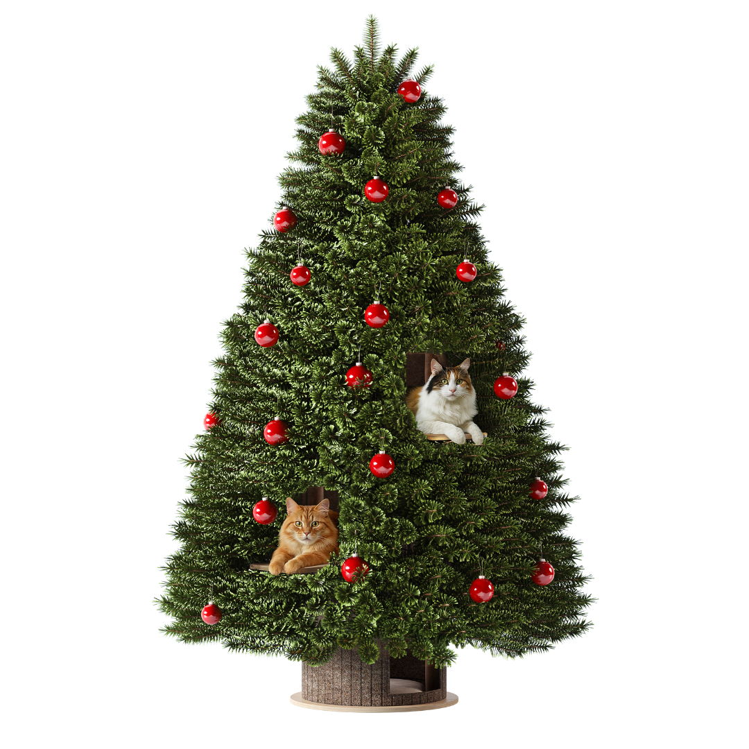 Cats love climbing, but traditional Christmas trees don’t always survive their curiosity.