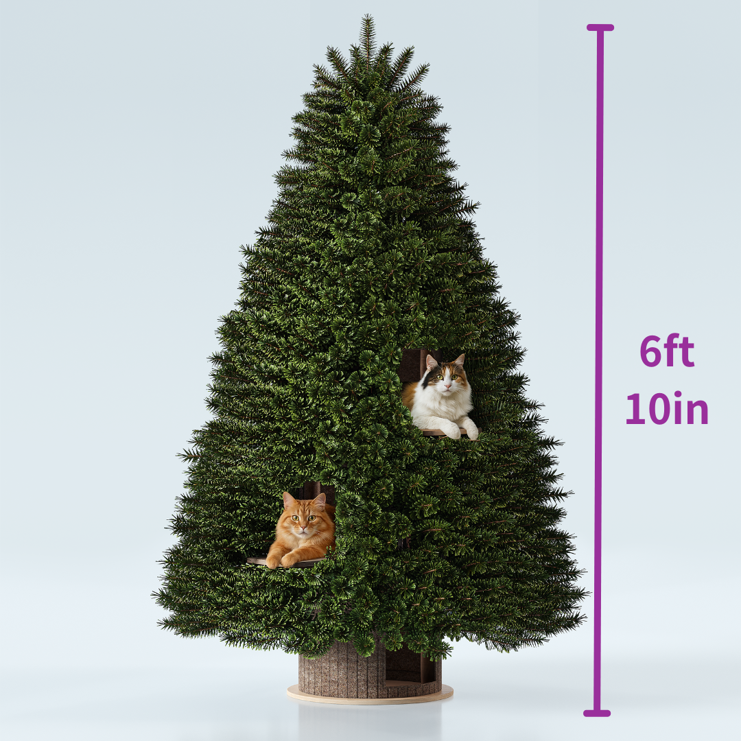 A full-sized 6ft 10in artificial Christmas tree for your cat and you throughout the holiday season.